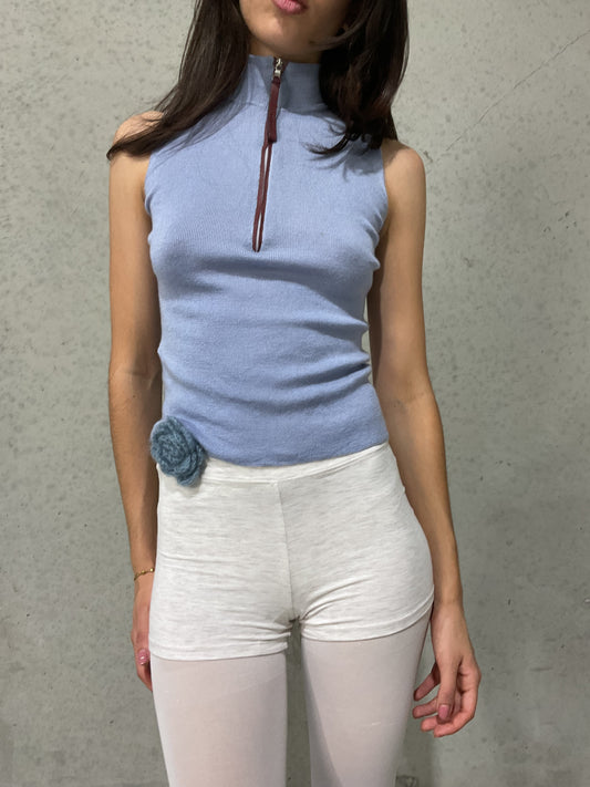 eina crochet flower pin cyan blue