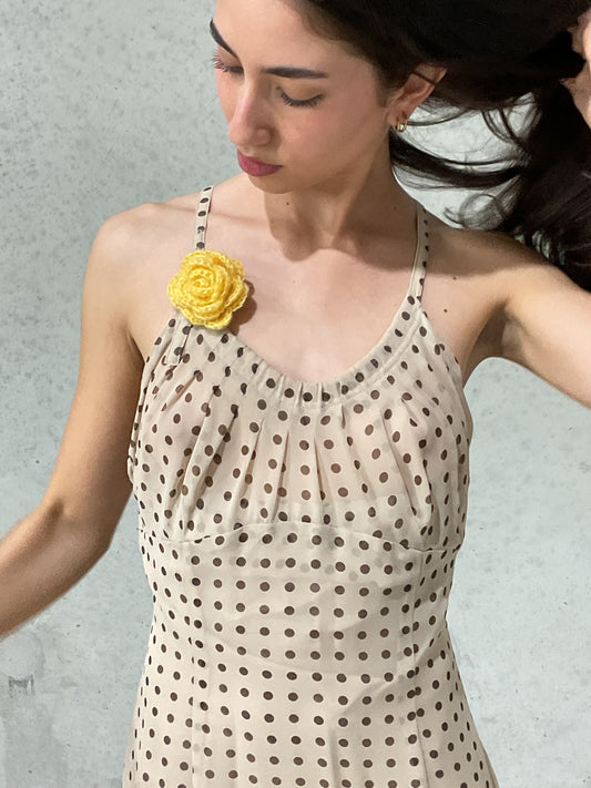 eina crochet flower pin yellow