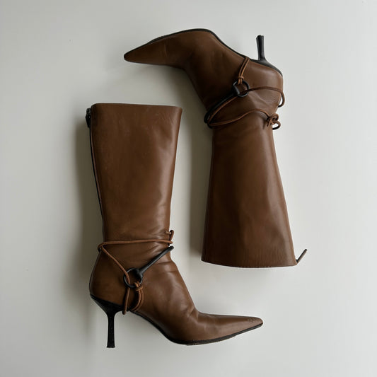 gucci by tom ford fw 2004 leather horse-bit rope boots
