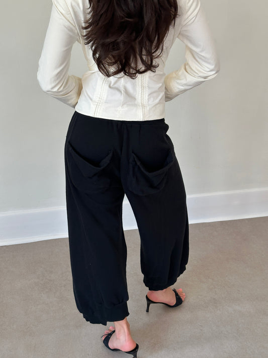 y’s by yohji yamamoto black sweatpants with ribbed hem