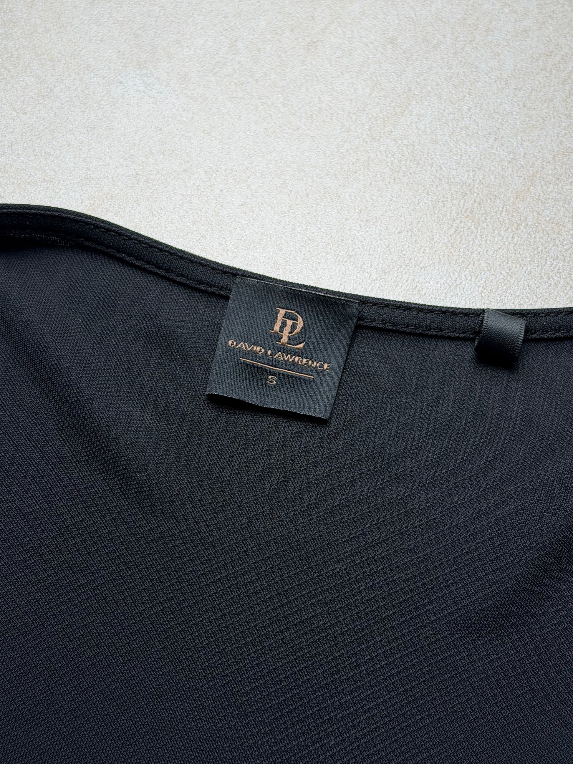 2000s black sleeveless top featuring a deep draped v-neckline and soft gathered front. crafted from a stretch jersey fabric that fits close to the body while maintaining fluid drape. clean cap-style shoulders and a smooth hemline create a minimal, refined silhouette. in excellent vintage condition with no visible flaws.