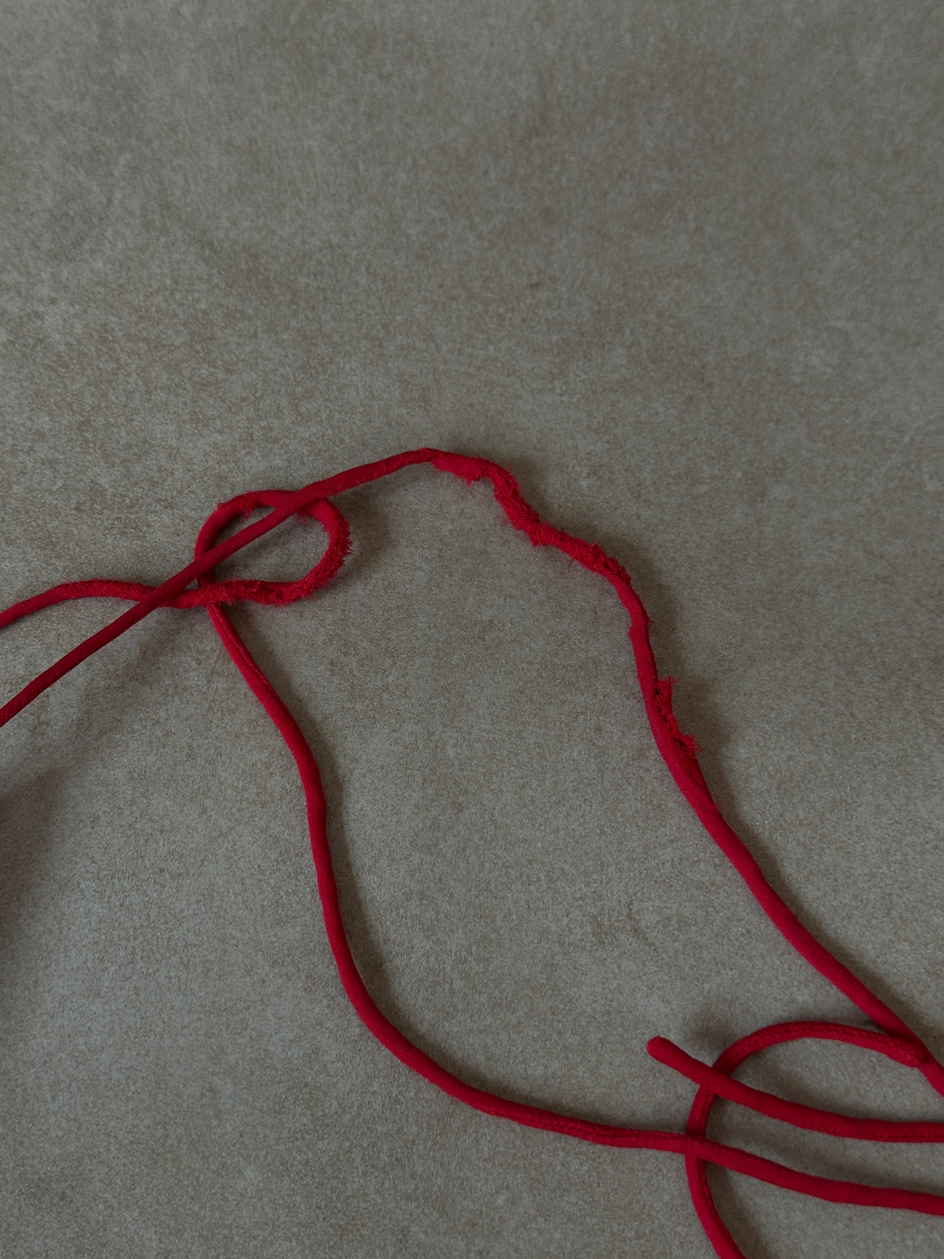 dkny draped halter top in crimson red. features gathered neckline with tie closure at back and fitted waist with cross-back detail. some fraying on the neck tie, not noticble when tied. fluid stretch fabric with soft sheen