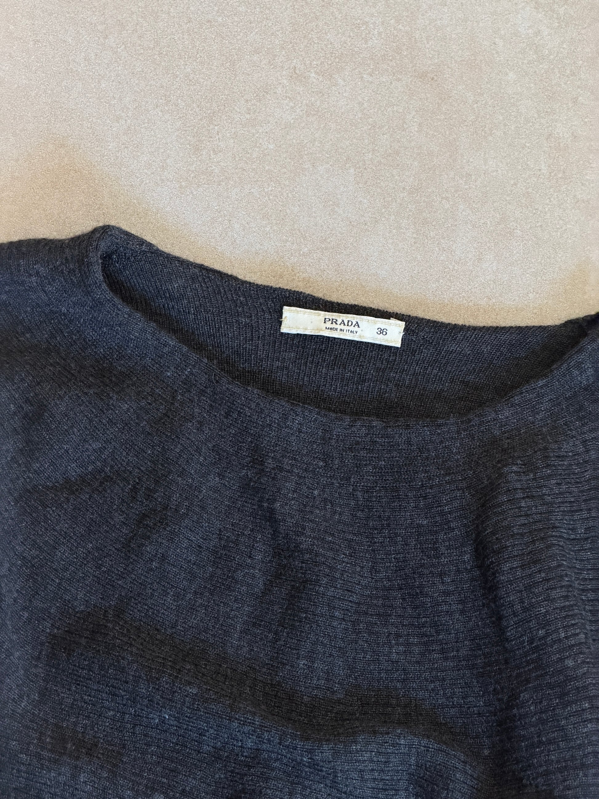prada charcoal wool–silk knit with ribbed construction and layered cape-style overlay. soft stretch with a close fit through the body. in good vintage condition with light, even wear