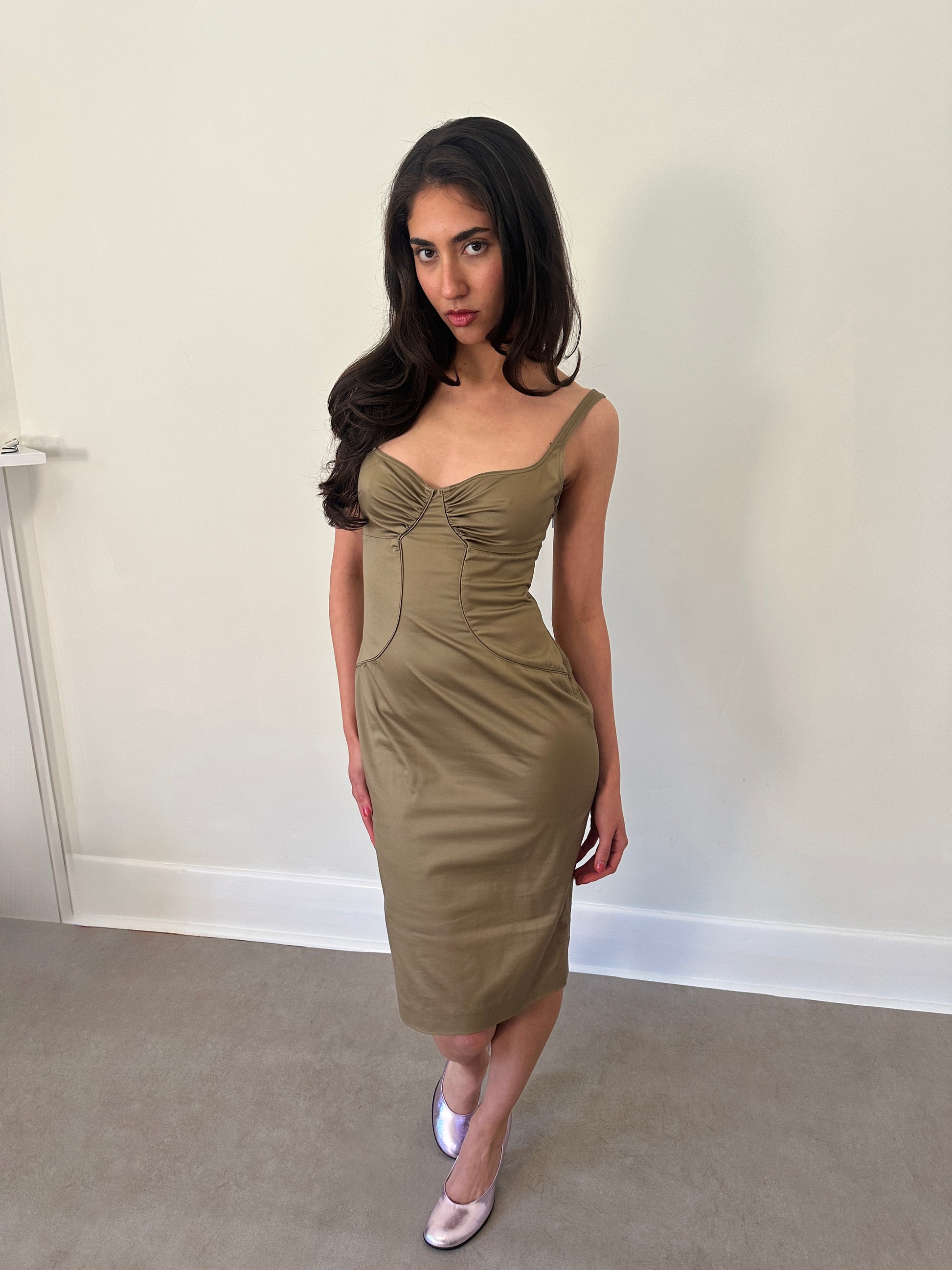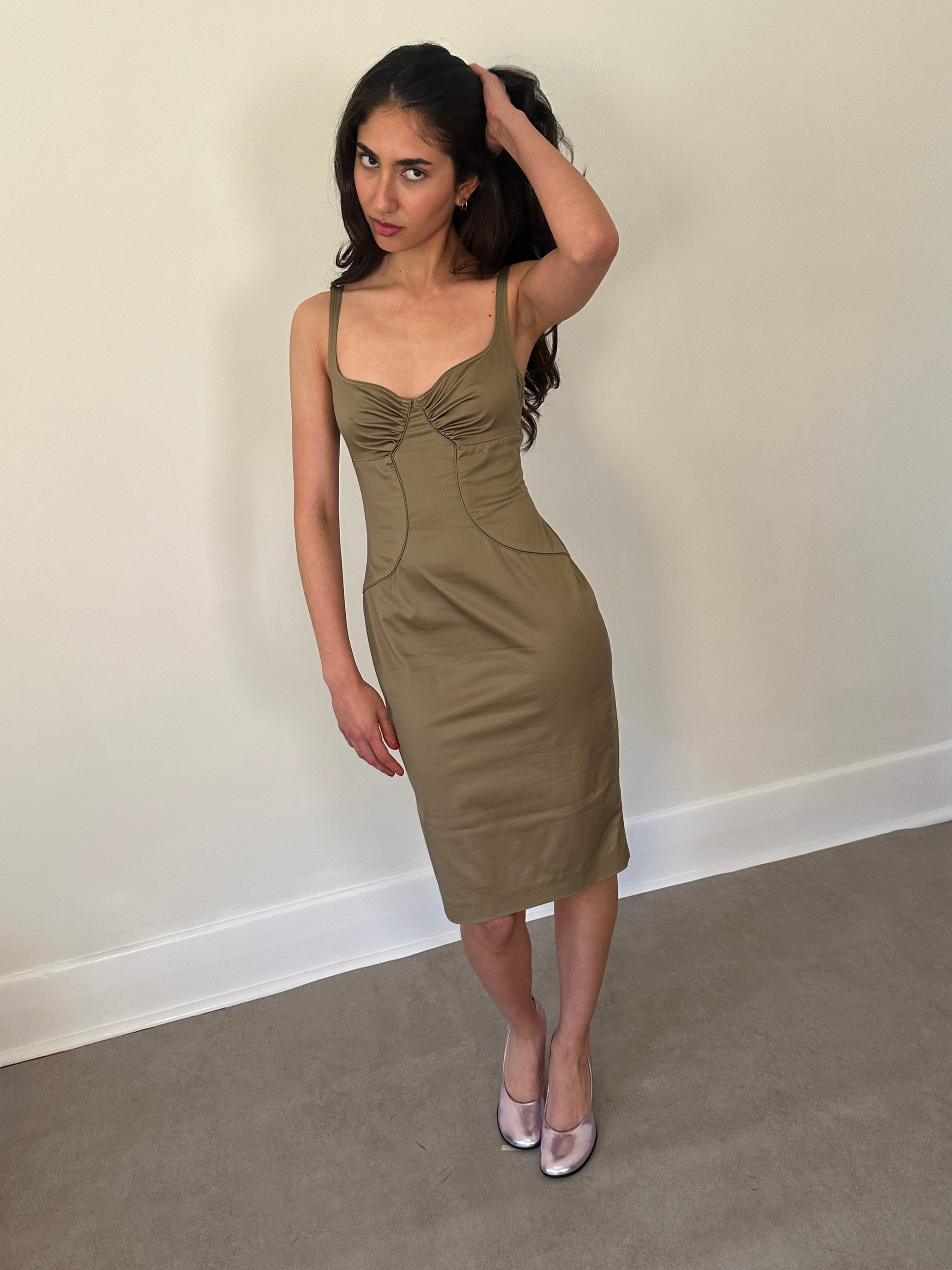 rare gucci spring/summer 2003 by tom ford sleeveless dress, fitted silhouette, falls just below the knee. crafted from a lightweight cotton blend with a touch of stretch (50% cotton, 37% polyester, 3% polyurethane)