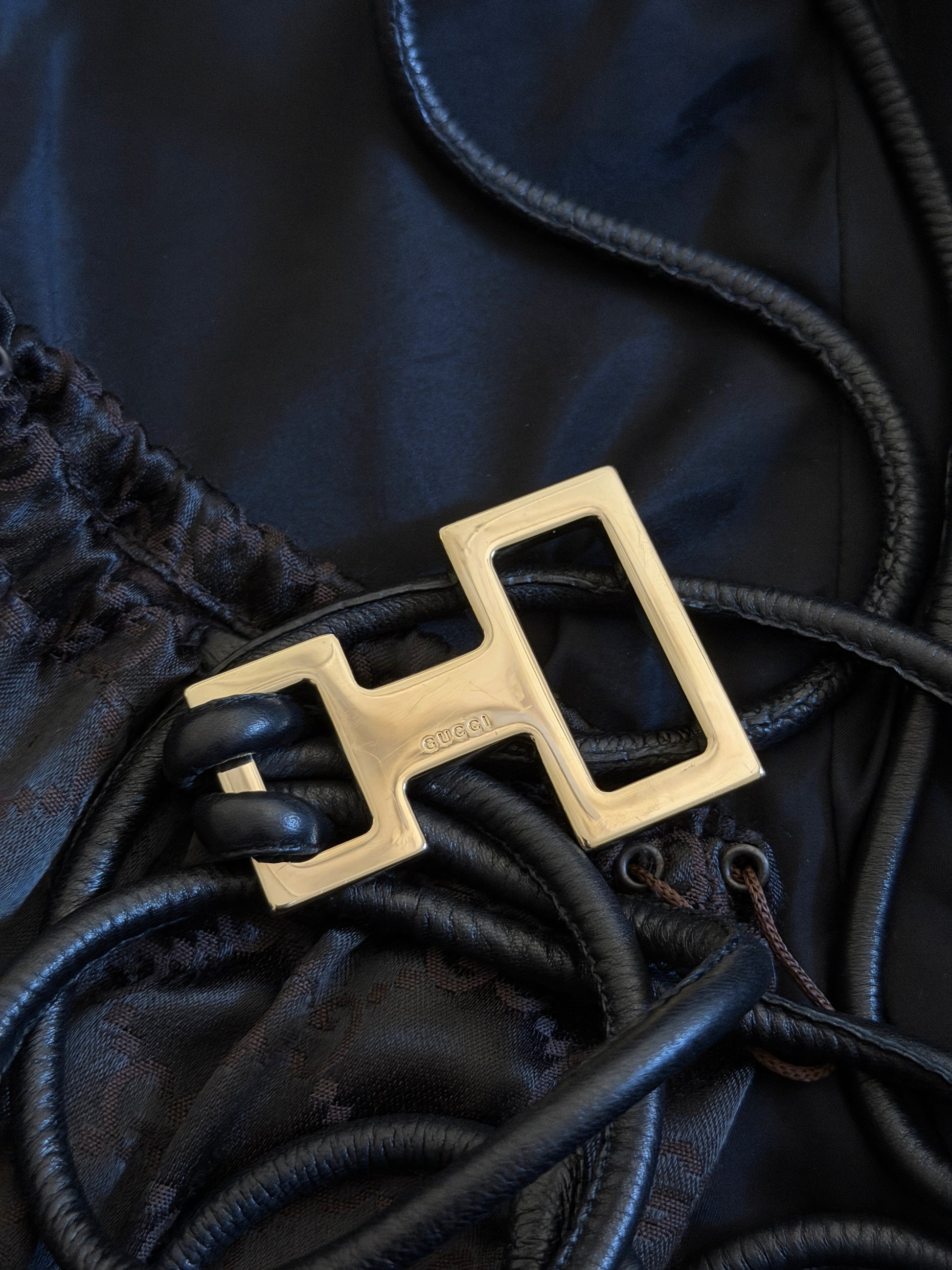 (rare) gucci fall 2004 leather strap velour jacket