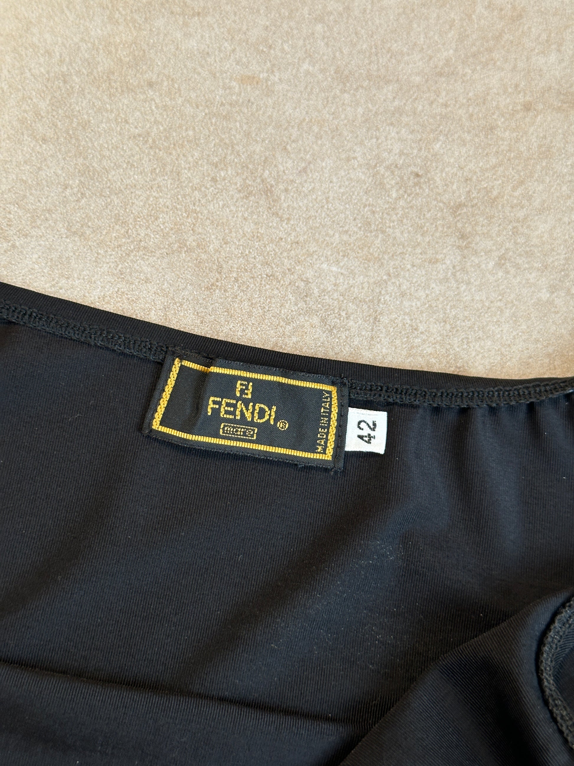 rare fendi black top worn by bella hadid - made in italy, subtle stretch for a flattering fit, crafted from a high quality fabric blend with a soft handfeel and slight elasticity. new and unused condition — carefully stored with no flaws