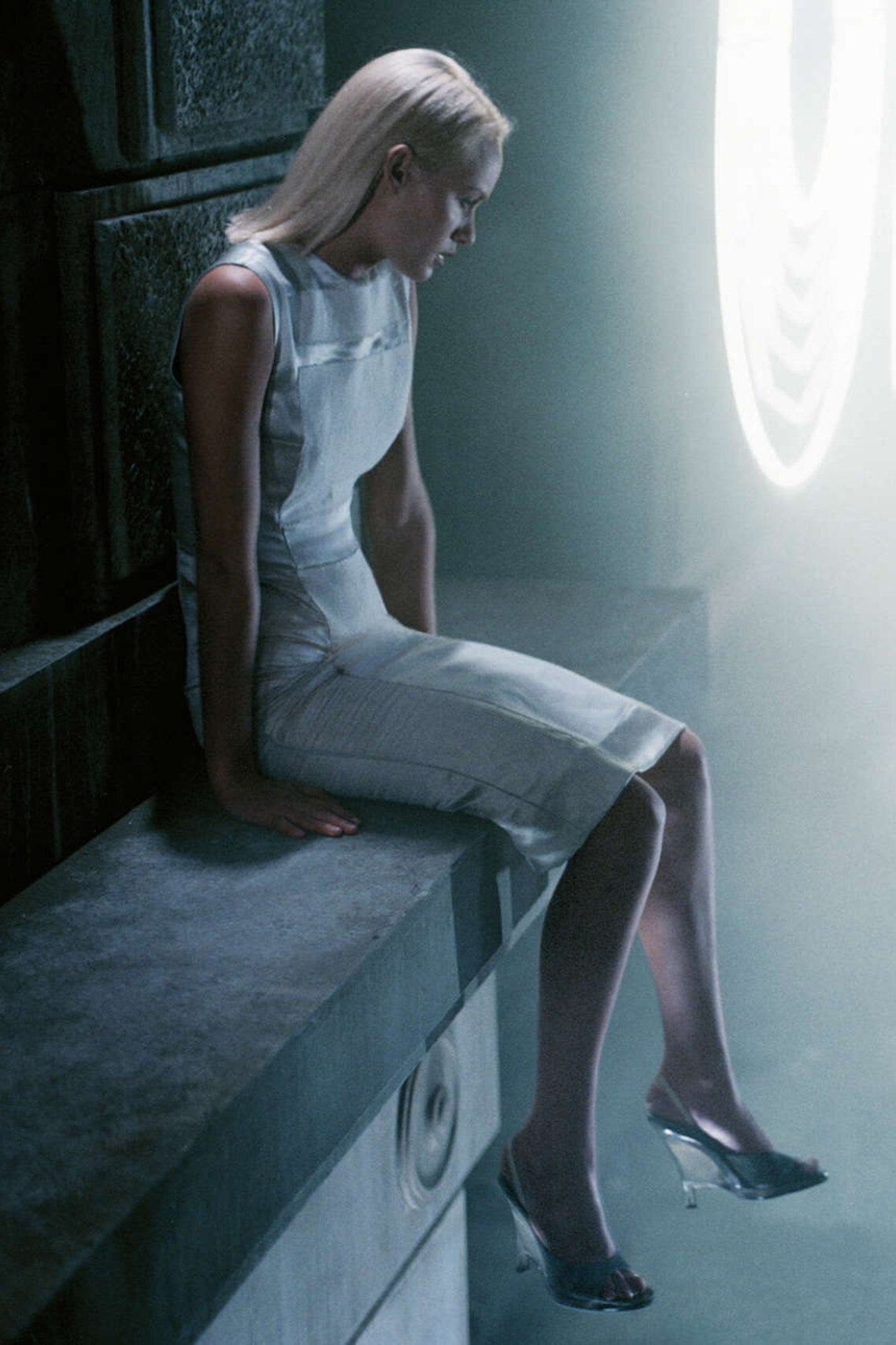 super rare prada spring summer 1998 runway vest top crafted from a linen-silk-cotton blend with a light-reflective sheen that shifts in lighting. features a minimal, tailored cut with a slightly structured silhouette. condition is overall clean with some light threading and dirt on the surface, plus a small stain and scratch on the back (see images)