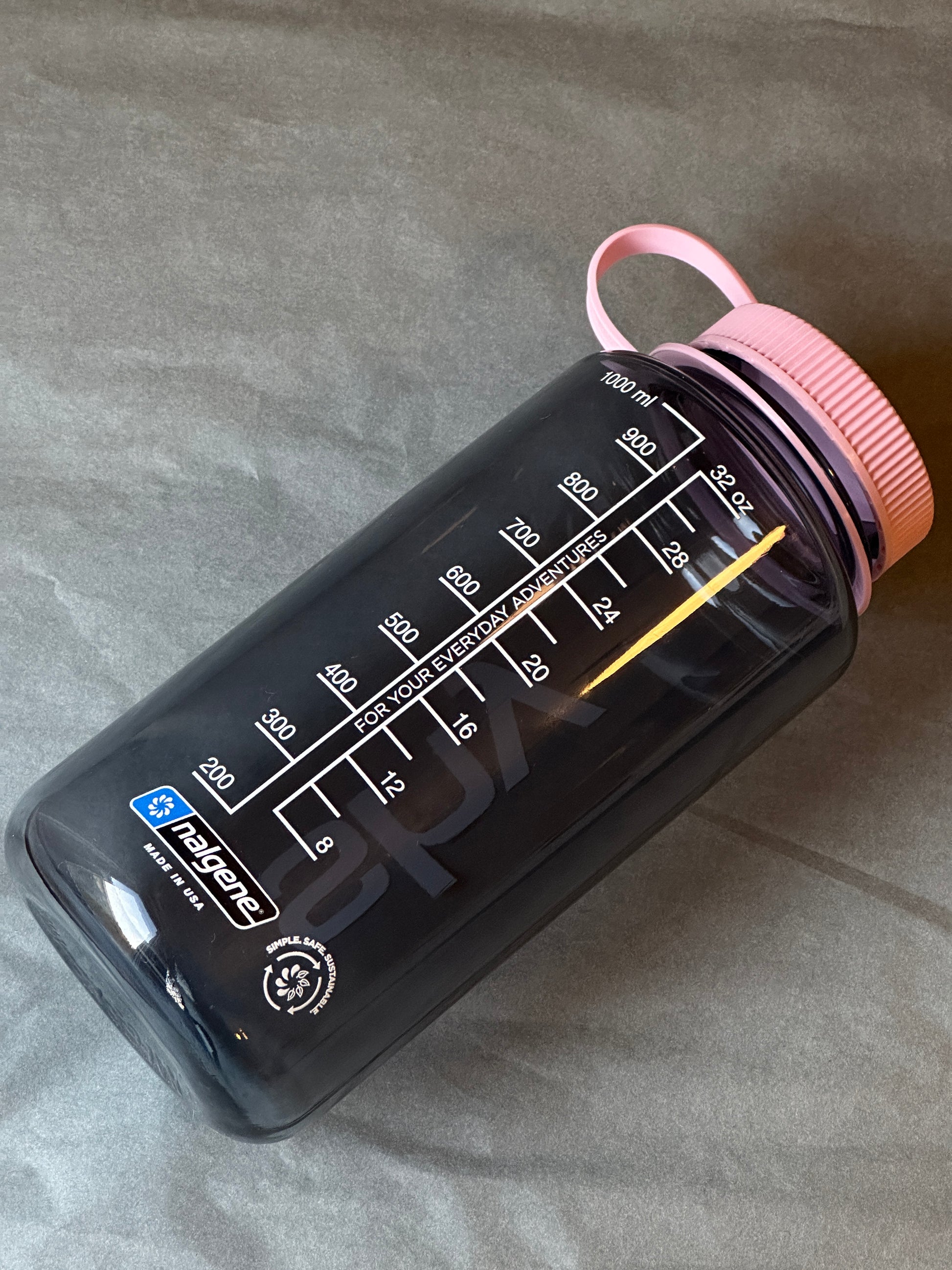 nalgene x shy custom 32oz wide mouth sustain bottle. each bottle is unique and part of a limited drop. please note, minor surface variations or light marks may be present from production — bottle colours are one of one