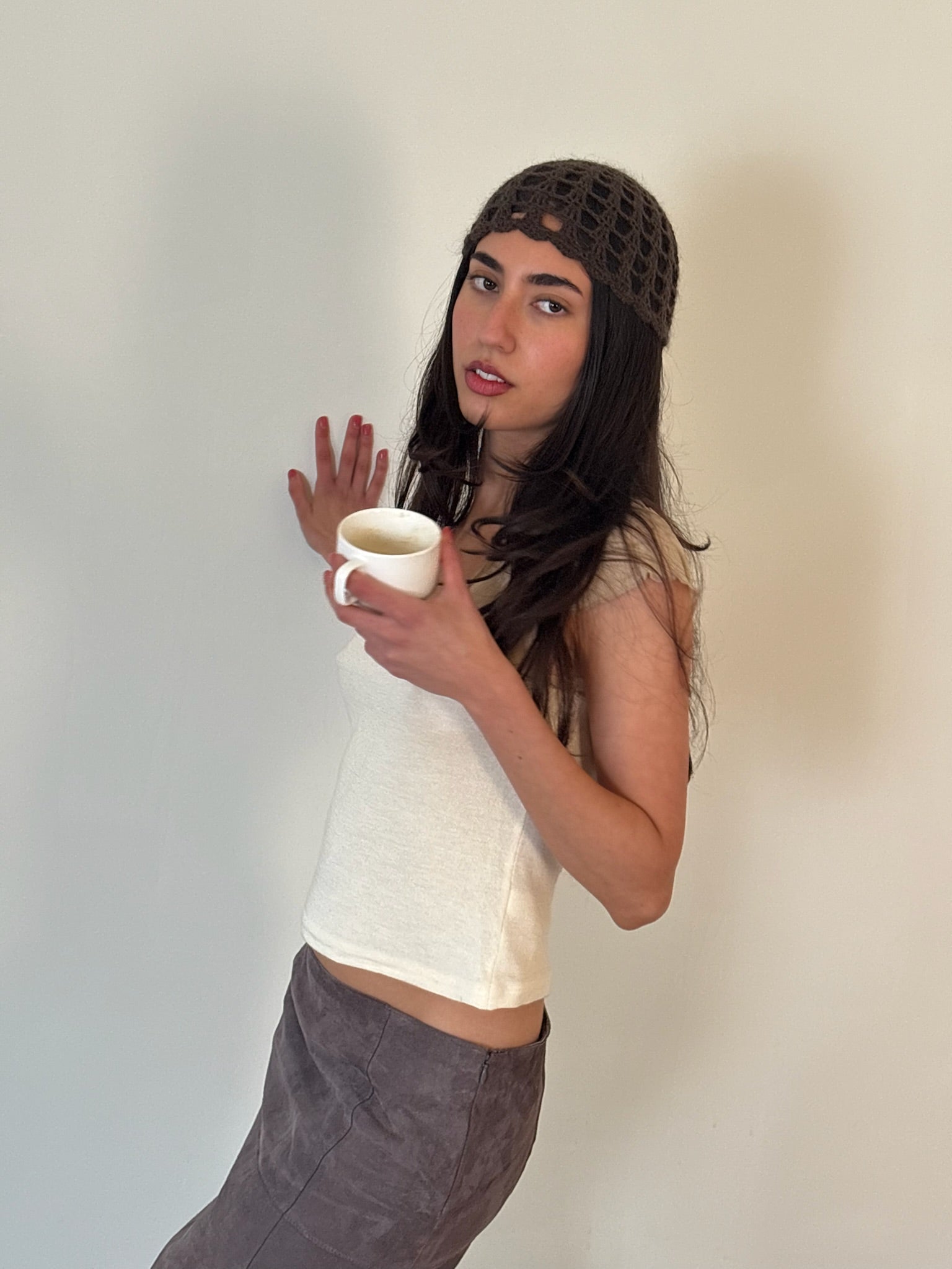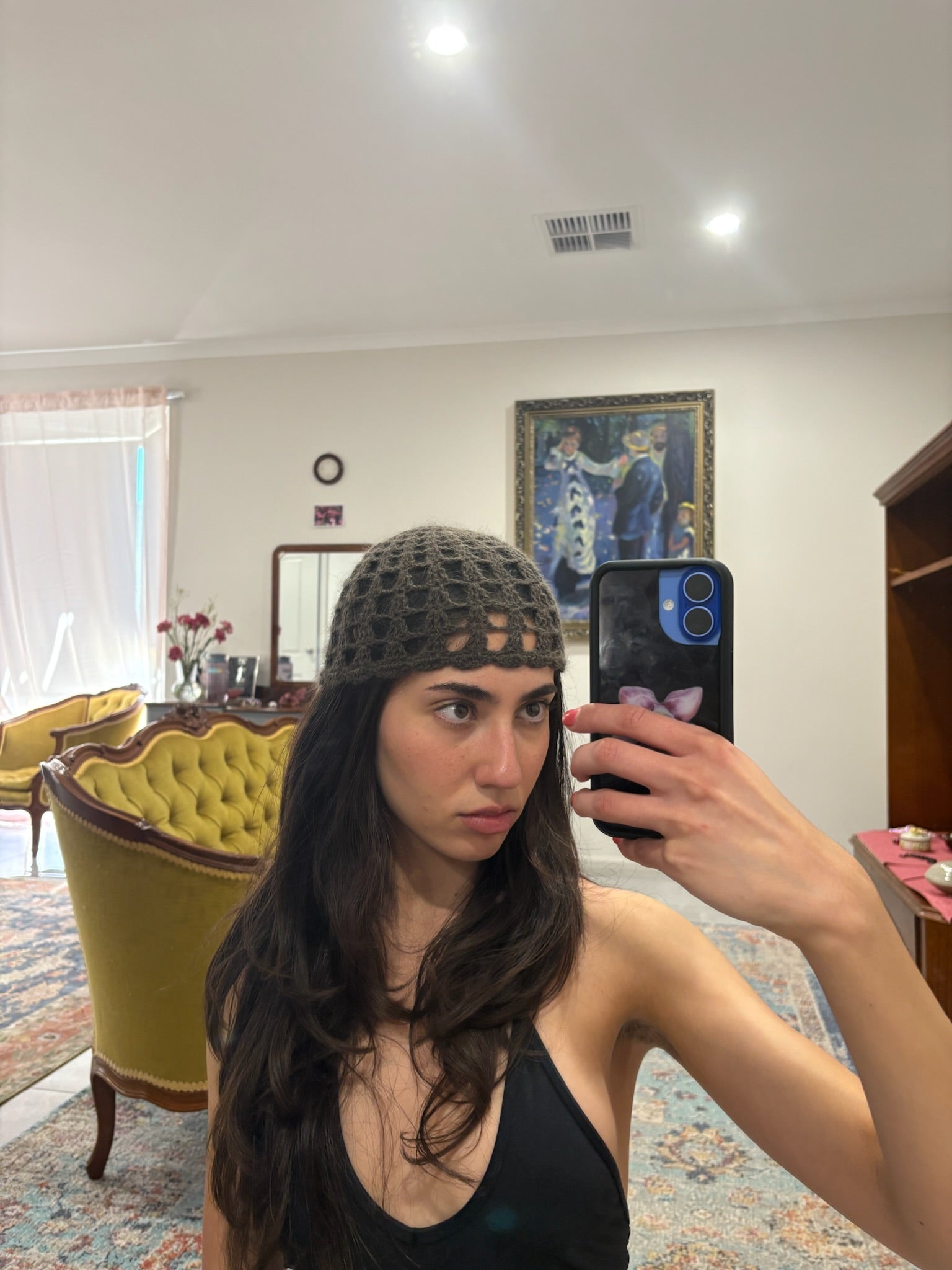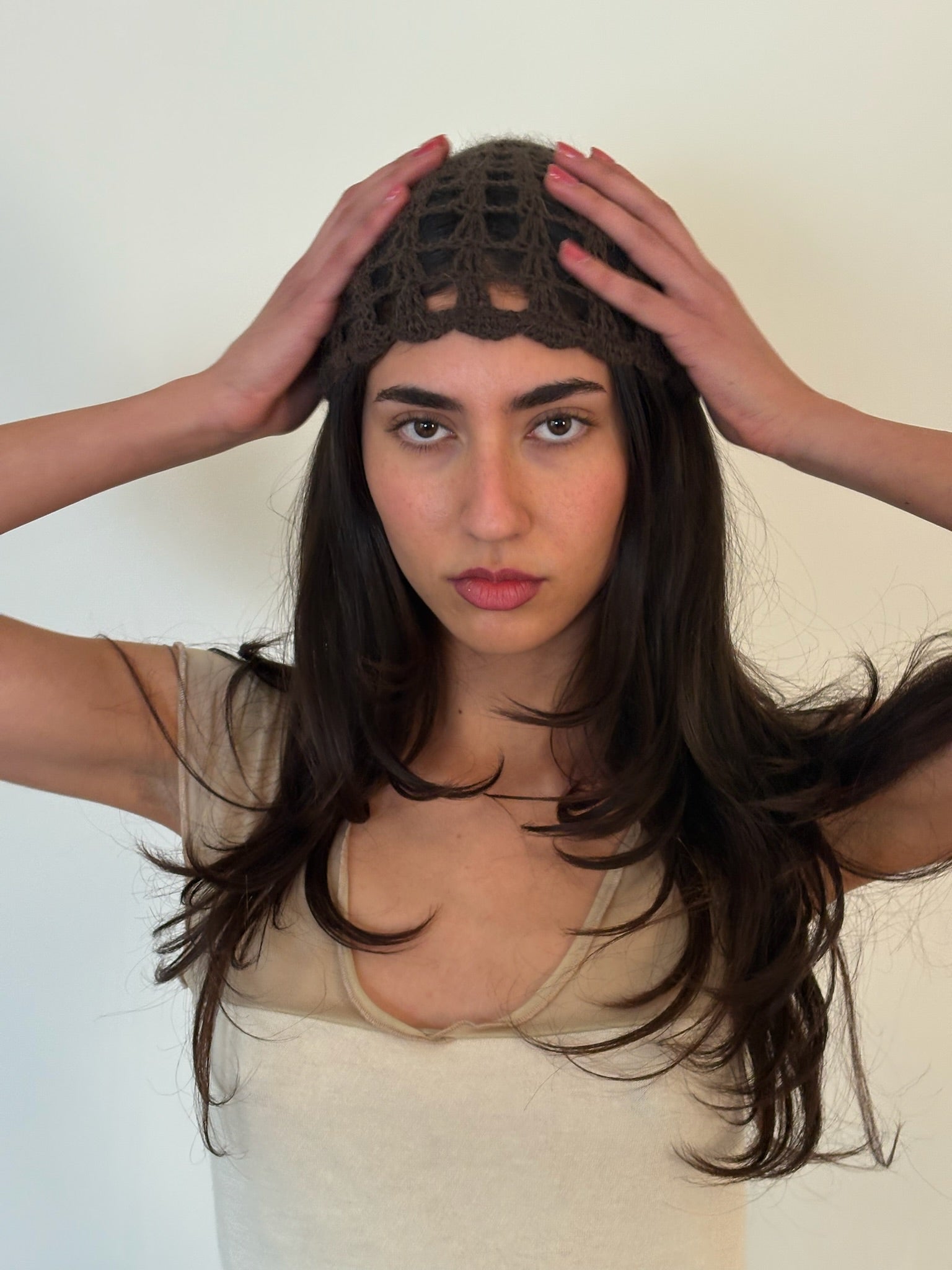 (brown) handcrafted crochet skull cap made from a soft angora and nylon blend. each piece is uniquley crocheted by @einacrochet and may vary slightly